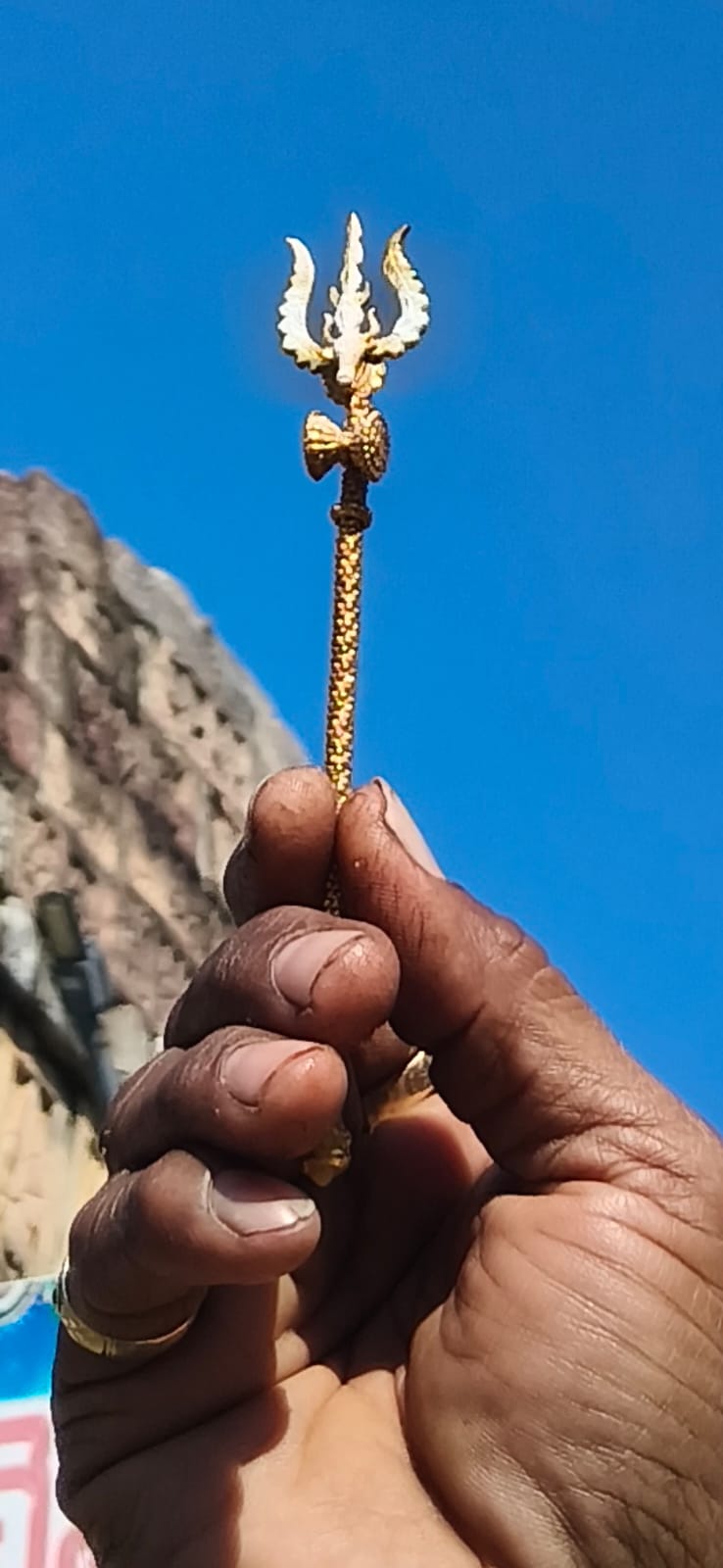 జగిత్యాల జిల్లా రాయికల్ పట్టణంలోని సూక్ష్మ కళాకారుడైన స్వర్ణకారుడు బాలకృష్ణ వీరాభిమాని ఇల్లెందుల నాగేందర్ రేపు విడుదల కాబోయే అఖండ -2 చిత్రంలోని త్రిశూలాన్ని పంచ లోహాలతో స్వయంగా తయారుచేశాడు. ఈ త్రిశూలానికి గురువారం రోజు రాయికల్ పట్టణంలోని అతి పురాతనమైన గుడి కోట శ్రీ చెన్న కేశవనాథ ఆలయంలో అభిషేకం, పూజలు జరిపించడం జరిగింది. ఈ సందర్భంగా ఇల్లెందుల నాగేందర్ మాట్లాడుతూ అతి సూక్ష్మ త్రిశూలాన్ని స్వయంగా నేనే వెళ్లి నందమూరి బాలకృష్ణకు బహుకరిస్తానని తెలియజేశారు. ఈ కార్యక్రమంలో ఆలయ కమిటీ చైర్మన్ మచ్చ శ్రీధర్, పిప్పోజి మహేందర్ బాబు, బూర్ల గంగన్న బత్తిని నిరంజన్ ఆలయ అర్చకులు మునుగోటి సతీష్ శర్మ పాల్గొన్నారు.