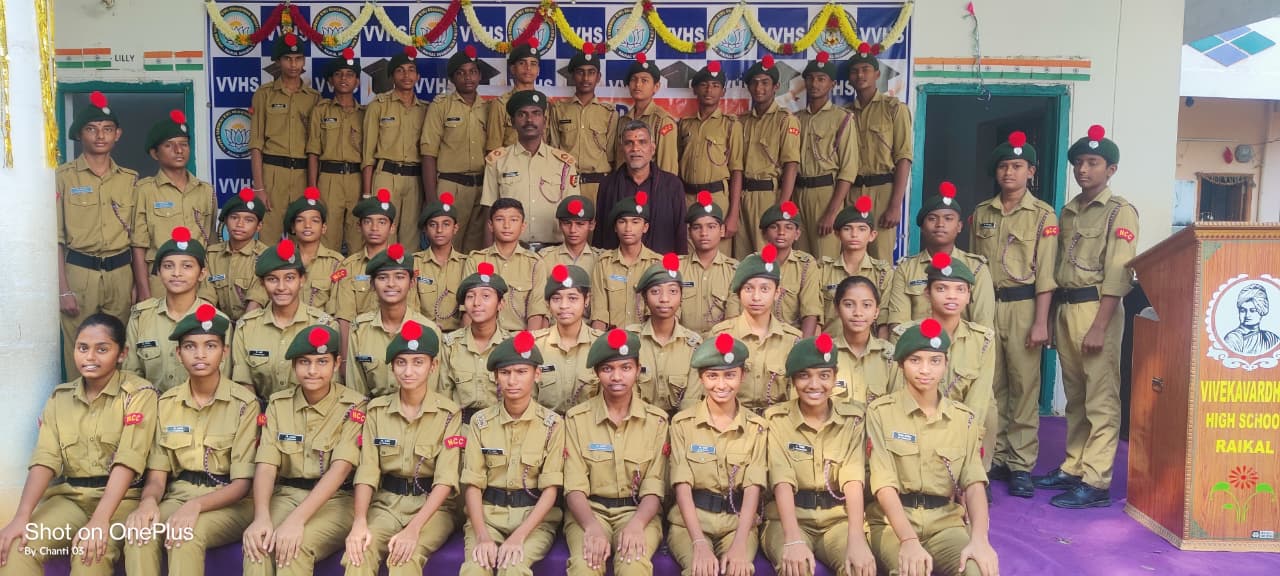 రాయికల్ పట్టణంలోని వివేకవర్ధిని ఉన్నత పాఠశాలలో ఎన్సిసి అవతరణ దినోత్సవం సందర్భంగా పాఠశాల ప్రధానోపాధ్యాయులు కైరం సత్యం మాట్లాడుతూ విద్యార్థినీ విద్యార్థులకు సైనిక శిక్షణ ఇచ్చి అత్యవసర పరిస్థితుల్లో సేవల నిమిత్తం సిద్ధంగా ఉంచడం ఈ సమస్త ప్రధాన లక్ష్యం అని స్కూలు రోజులనుంచి తలపై ఎర్రటి కుచ్చులు గల టోపి తో ఖాకీ దుస్తులు ధరించి శిక్షణ తీసుకునే విద్యార్ధులనే ఎన్.సి.సి. స్టూడెంట్స్ అంటాము నేటి చిన్నారులే రేపటి పౌరులు క్రమశిక్షణాయుత , దేశభక్తిగ పౌరులను తయారుచేయడమే ఎన్.సి.సి. ముఖ్య ఉద్దేశము . ఎన్.సి.సి. లో చేరే పిల్లలు దృఢ చిత్తము తో శిక్షణ సాగిస్తుంటారు . ఎన్ .సి .సి సర్టిఫికెట్ ద్వారా విద్యార్థినీ విద్యార్థులు ఉన్నత చదువులకు మరియు ఉద్యోగ అవకాశాలకు తోడ్పడుతుందని ఈ సందర్భంగా తెలియజేశారు. ఈ కార్యక్రమంలో వివేకవర్ధిని ఉపాధ్యాయులు విద్యార్థిని విద్యార్థులు తల్లిదండ్రులు పాల్గొన్నారు.